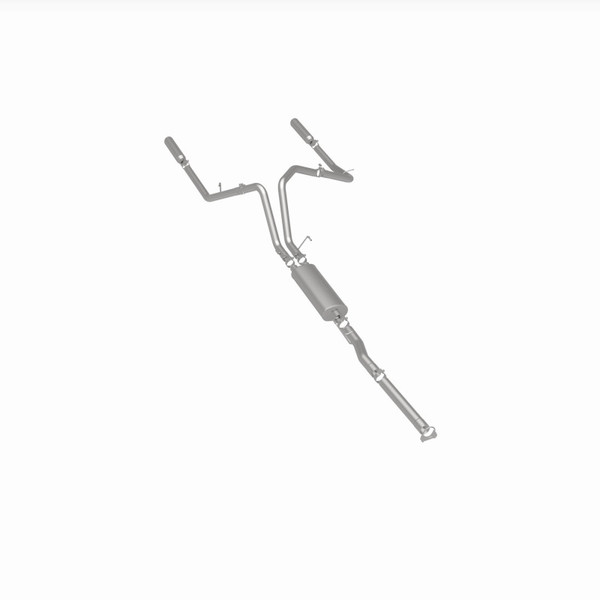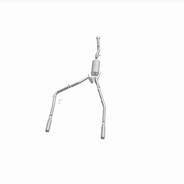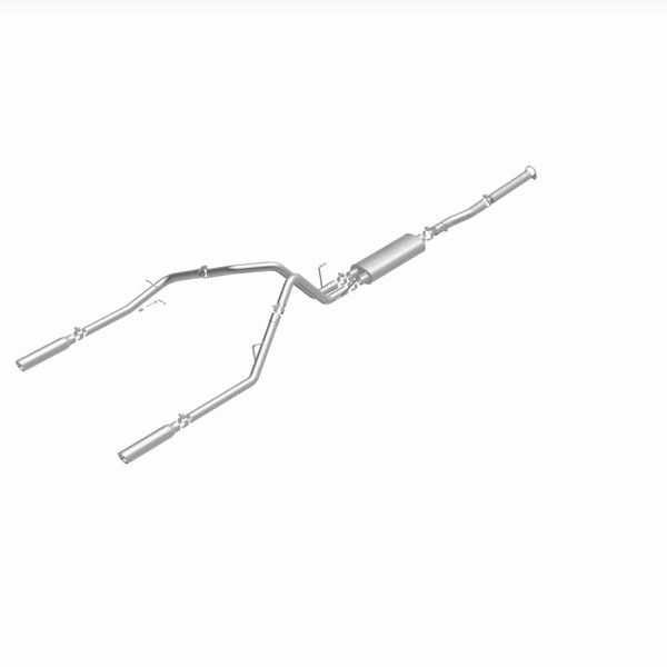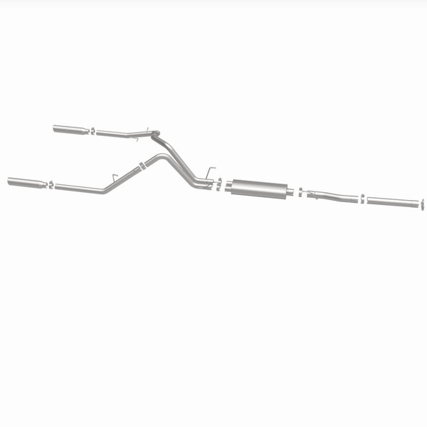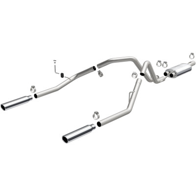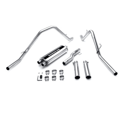 The MagnaFlow 2003 Dodge Ram 1500 Street Series Cat-Back Performance Exhaust System 15788 brings out the personality of your 5.7L 2003-2003 Dodge Ram 1500 with our signature resonant, powerful engine tone and dyno-proven performance. Thanks to its fast-flowing, mandrel bent 3in. main piping and 1 Straight-Through mufflers ending in a Dual Split Rear exit with 3.5in. Polished Clamp-On Single Wall Angle Cut Rolled Edge tips, this Dodge Ram 1500 exhaust kit has the performance chops to match its sporty sound and appearance. Upgrade your ride to the next level with an exhaust that has the pipes to put other Dodge Ram 1500's to shame. With this system your vehicle will be producing Aggressive exterior and Moderate interior sound levels while leaving other cars and trucks feeling envious at every stoplight. Exhaust kit 15788 features a cat-back layout that replaces your ride's stock exhaust components from near the catalytic converter on back. Extensive 3D scanning during development has resulted in a direct-fit design that you can easily install yourself. 15788 is produced using CNC precision robotic manufacturing techniques and is backed by MagnaFlow's 1-year limited finish warranty and limited lifetime construction warranty.