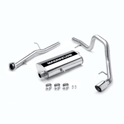 The MagnaFlow Street Series Cat-Back Performance Exhaust System 16606 brings out the personality of your SUV with our signature resonant, powerful engine tone and dyno-proven performance. Thanks to its fast-flowing, mandrel bent 2.5in. main piping and 1 Straight-Through mufflers ending in a Single Driver Side Rear exit with 4in. Polished Welded-On Double Wall Angle Cut Rolled Edge tips, this SUV exhaust kit has the performance chops to match its sporty sound and appearance. Upgrade your ride to the next level with an exhaust that has the pipes to put other SUV's to shame. With this system your vehicle will be producing Moderate exterior and Mild interior sound levels while leaving other cars and trucks feeling envious at every stoplight. Exhaust kit 16606 features a cat-back layout that replaces your ride's stock exhaust components from near the catalytic converter on back. Extensive 3D scanning during development has resulted in a direct-fit design that you can easily install yourself. 16606 is produced using CNC precision robotic manufacturing techniques and is backed by MagnaFlow's 1-year limited finish warranty and limited lifetime construction warranty.