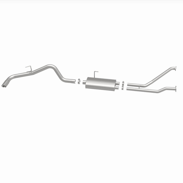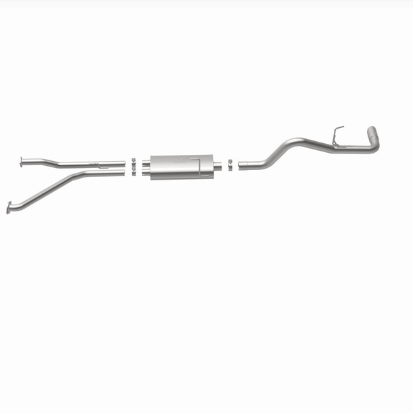 The MagnaFlow 2010-2019 Nissan Frontier Street Series Cat-Back Performance Exhaust System 15580 brings out the personality of your 4.0L 2010-2019 Nissan Frontier with our signature resonant, powerful engine tone and dyno-proven performance. Thanks to its fast-flowing, mandrel bent 3in. main piping and 1 Straight-Through mufflers ending in a Single Passenger Side Rear exit with 3.5in. Polished Welded-On Double Wall Angle Cut Folded Edge tips, this Nissan Frontier exhaust kit has the performance chops to match its sporty sound and appearance. Upgrade your ride to the next level with an exhaust that has the pipes to put other Nissan Frontier's to shame. With this system your vehicle will be producing Moderate exterior and Mild interior sound levels while leaving other cars and trucks feeling envious at every stoplight. Exhaust kit 15580 features a cat-back layout that replaces your ride's stock exhaust components from near the catalytic converter on back. Extensive 3D scanning during development has resulted in a direct-fit design that you can easily install yourself. 15580 is produced using CNC precision robotic manufacturing techniques and is backed by MagnaFlow's 1-year limited finish warranty and limited lifetime construction warranty.