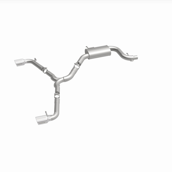 The MagnaFlow 2010-2014 Volkswagen GTI Sport Series Cat-Back Performance Exhaust System 15521 enhances your 2.0L 2010-2014 Volkswagen GTI with an aggressive character that is sure to help you stand out from the other Volkswagen GTI you encounter on the street. With its 3in. diameter fast-flowing mandrel bent main piping that passes through 1 Straight-Through mufflers before ending in a Dual Split Rear exit with 4in. Polished Welded-On Double Wall Angle Cut Rolled Edge tips, this dyno-proven Volkswagen GTI exhaust system refuses to be ignored. As such, 15521 is tuned to produce our powerful, resonant signature exhaust note at Aggressive exterior and Moderate interior sound levels, so please check to ensure compliance with local noise regulations. The system's cat-back design replaces all your import's stock exhaust components from the catalytic converter on back. Extensive 3D scanning and CNC precision robotic manufacturing techniques are used to ensure that your exhaust system fits perfectly with just a simple do-it-yourself installation process. The durable, corrosion resistant stainless steel construction of 15521 is backed by MagnaFlow's limited lifetime warranty.