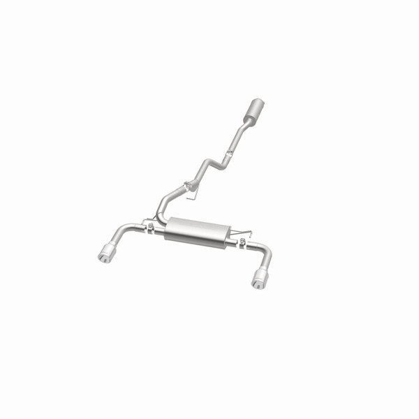 The MagnaFlow 2013-2019 Ford Escape Street Series Cat-Back Performance Exhaust System 15203 brings out the personality of your 1.6L, 2.0L 2013-2019 Ford Escape with our signature resonant, powerful engine tone and dyno-proven performance. Thanks to its fast-flowing, mandrel bent 2.25in. main piping and 2 Straight-Through mufflers ending in a Dual Split Rear exit with 4in. Polished Welded-On Double Wall Angle Cut Rolled Edge tips, this Ford Escape exhaust kit has the performance chops to match its sporty sound and appearance. Upgrade your ride to the next level with an exhaust that has the pipes to put other Ford Escape's to shame. With this system your vehicle will be producing Moderate exterior and Mild interior sound levels while leaving other cars and trucks feeling envious at every stoplight. Exhaust kit 15203 features a cat-back layout that replaces your ride's stock exhaust components from near the catalytic converter on back. Extensive 3D scanning during development has resulted in a direct-fit design that you can easily install yourself. 15203 is produced using CNC precision robotic manufacturing techniques and is backed by MagnaFlow's 1-year limited finish warranty and limited lifetime construction warranty.