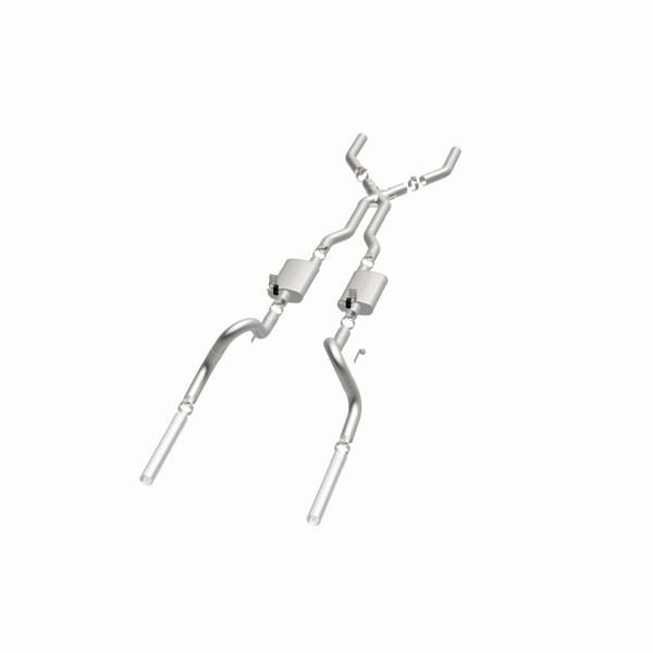 The MagnaFlow 1964-1966 Ford Mustang Street Series Crossmember-Back Performance Exhaust System brings enhanced engine sound and dyno-proven performance to your 2.8L, 3.3L, 4.3L, 4.7L 1964-1966 Ford Mustang with a healthy helping of our deep, resonant signature exhaust note at Aggressive exterior and Moderate interior sound levels. Thanks to its durable, corrosion resistant stainless steel design, this Ford Mustang exhaust system will handle whatever tarmac you decide to leave your mark on. This performance exhaust kit features a crossmember-back layout designed to replace your Ford Mustang's exhaust system from the crossmember on back. With its fast-flowing, mandrel bent 3in. main piping and 2 Straight-Through mufflers ending in a Dual Split Rear exit that you can enhance with tips of your choosing, your muscle car will be sounding as awesome as it looks. Extensive 3D scanning during development has resulted in a direct-fit design that you can easily install yourself. 15817 is produced using CNC precision robotic manufacturing techniques and is backed by MagnaFlow's limited lifetime construction warranty.