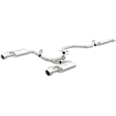 The MagnaFlow 2014-2017 Audi Q5 Touring Series Cat-Back Performance Exhaust System 15378 is the perfect partner for your 3.0L 2014-2017 Audi Q5 to take on a grand tour or a weekend cruise thanks to the powerful, resonant exhaust note and dyno-proven performance it brings to the table. This durable, corrosion resistant stainless steel exhaust kit is engineered to conquer the miles with ease while enhancing your driving experience with Moderate exterior and Mild interior sound levels generated through its fast-flowing, mandrel bent 2.5in. main piping and 1 Straight-Through muffler that terminate in a Dual Split Rear exit with 4.5in. Polished Welded-On Double Wall Angle Cut Folded Edge tips. 15378 features a cat-back layout design to replace your import's stock exhaust components from the catalytic converter on back. This Audi Q5 exhaust system is compatible with 2014-2017 engines. The use of extensive 3D scans made during the development process has resulted in an easy-to-install, direct-fit design that fits your Audi Q5 like a glove. 15378 is produced using CNC precision robotic manufacturing techniques and is backed by MagnaFlow's limited lifetime construction warranty.