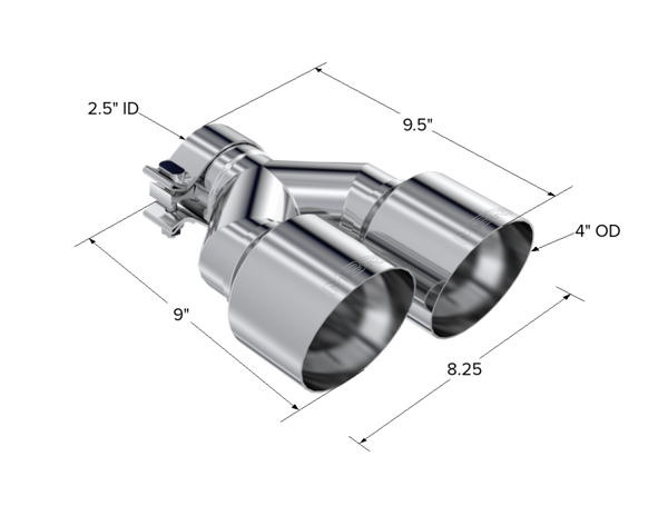 The exhaust tip is the crowning touch to your performance exhaust. It is your opportunity to really show off your personal style. That's why MBRP offers such a wide assortment of high quality, bolt on tips, because everybody has their own idea of style. MBRP offers T304 polished stainless, Black coated, Burnt End and Carbon Fiber tip options in various sizes. The tips are universal fit so be sure to measure your tail pipes outside diameter and match it to the MBRP tip INLET diameter before ordering.