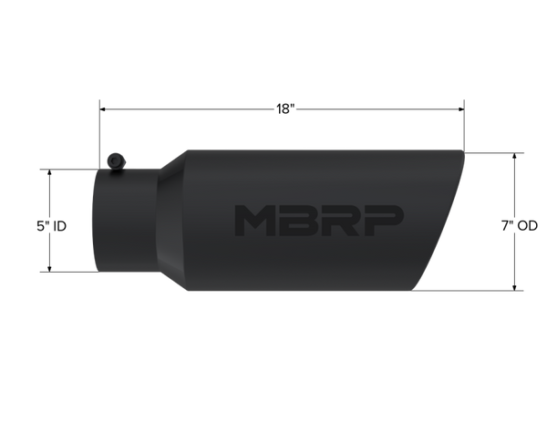 MBRP Universal Tip 7in O.D. Rolled End 5in inlet 18in length Black - T5127BLK