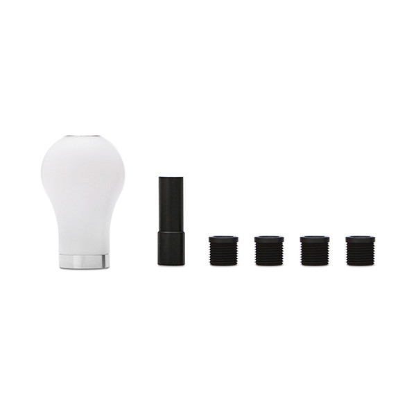 Mishimoto's teardrop shift knob puts a little twist on a classic design. The 2-piece hybrid design incorporates a heavy stainless steel core and a thermoplastic outer shell. The thermoplastic material provides protection against extreme surface temperatures. The thermoplastic shell is available in black or white to help match the style of your interior. This teardrop shift knob weighs in at 294g to provide precise and accurate shifts. This shifter features a plastic insert with three set screws for fitment onto unthreaded shift leavers along with four plastic threaded inserts to allow for fitment on various other vehicles.