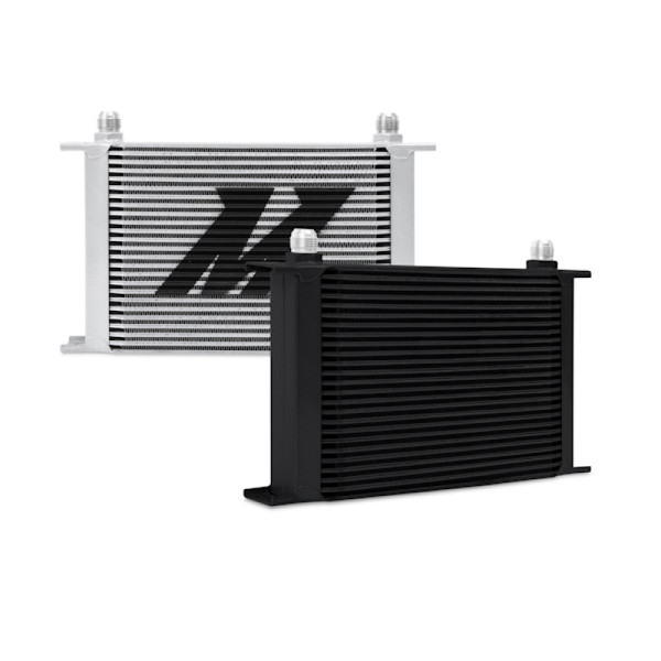 Every street or track vehicle demands a reliable and efficient cooling system.High oil temperatures accelerate oil degradation and can result in increased engine wear and potential failure of internal components.The Mishimoto universal 25-row oil cooler is the perfect upgrade for extending engine life and ensuring the proper lubrication of engine components while maintaining ideal oil temperatures.This oil cooler is nearly 2 inches thick and has an overall oil capacity of .44 qt.The Mishimoto universal 25-row oil cooler is available in silver or black and includes the Mishimoto lifetime warranty.