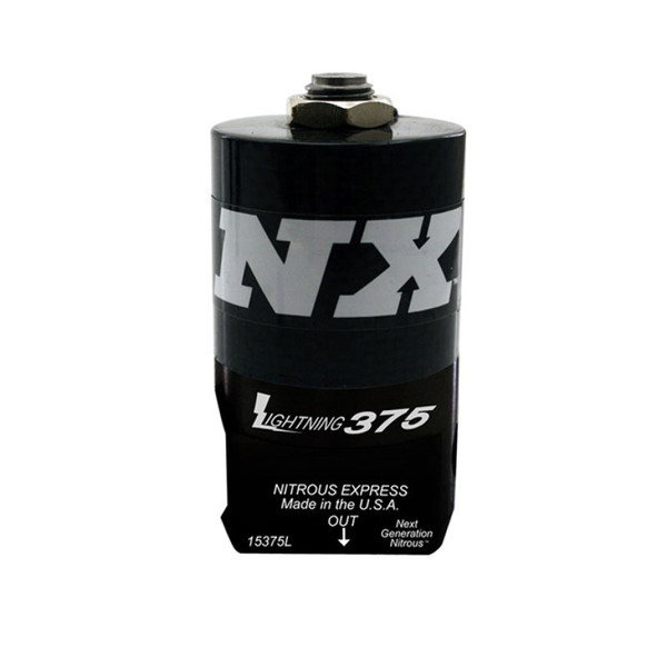 The NX Lightning 375 is the largest progressable solenoid on the planet! Engineered with only one internal 90 degree turn in the nitrous flow path, a true .375 orifice and its ability to be electronically progressed makes this solenoid a must have for any serious competitor. The 375 minimizes nitrous boiling and delivers a denser form of liquid nitrous to the system resulting in a cleaner running and easier to tune nitrous system. The 375 is engineered to accept up to a 10AN inlet fitting and a 6AN outlet fitting and has an integral purge port allowing clean pure nitrous to be drawn across the inlet orifice to insure a repeatable solenoid reaction time.
