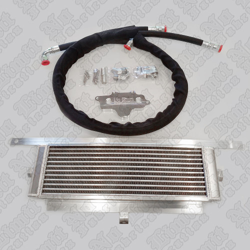 Now offering No Limit Fabrication 2011-2016 6.7L Oil Cooler Relocation Kit featuring an all aluminum heat exchanger to help keep temps down. Included with the kit is our CNC Billet Aluminum relocation plate, Radiator, and all needed hardware for install (Including cooler mounting bracket). This kit adds 1.5-2 Quarts to your oil capacity