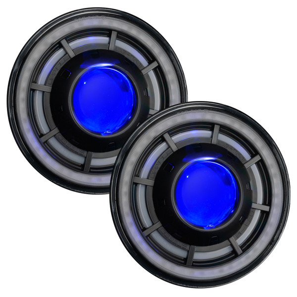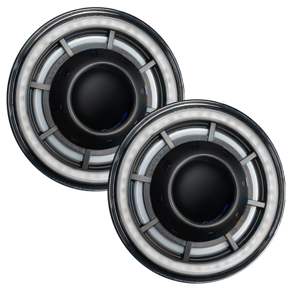 Introducing the all-new Oculus(tm) Bi-LED Headlamp system by ORACLE Lighting. Now available in a ColorSHIFT(tm) RGB+W Color-Changing version! Featuring advanced LED projection with 4,800 Lumens of high-quality illumination for enhanced driver visibility in all weather conditions. The LED light source has lower power demands compared to the factory lamps while providing more light output. ColorSHIFT(tm) Oculus(tm) Headlights feature 3-Tiered RGB features in the lamps: Outer Halo Ring (RGB+W) Inner Halo Ring (RGB) Projector Demon Eye (RGB) Each LED feature has a separate cable output and can be connected together so all 3 create the same color or set up as 3 separate Channels or zones depending on the user preference and the ColorSHIFT(tm) controller selected. Check out our Y-Splitter Adapters for the easiest control using our BC1 ColorSHIFT(tm) Controller Please note that these features are intended for off-road show use only and are not compliant for street use. The Pure-White DRL has its own wiring harness (same as the original Oculus) that connects to the fuse box with an add-a-circuit for easy and safe integration. The DRL will come on when the engine is running or can be connected to a switch (including the factory Aux switches) for additional user control.