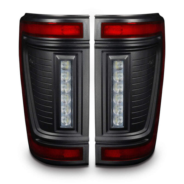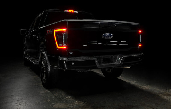 Protruding out significantly less than the factory tail lights, this low-profile design has a more streamlined appearance while also reducing the risk of tail light damage. These flush tail lights feature a unique modular design and functional LED lighting elements including high-powered reverse lights, unique signature perimeter lighting, and an animated turn signal sequence. No more problems backing up at night and no longer do you need to install additional reversing lamps onto the back of your truck to get the brightness you desire. That's because these LED reverse lights are basically a pair of LED light bars mounted into the tail light which will provide over 4,400 Lumens of rear-facing illumination! In addition to the attractive ?signature style LED lighting band and the high-output reverse light this design also features a ?dynamic turn signal effect. This ?motion or ?sequential effect is a fluid LED motion from the inside portion of the light to the outside portion of the light signifying the direction of the turn signal with a fluid animated LED sequence. These lights include wiring adapters which make them compatible with all F-150 models from 2021-2024 with or without the factory LED Option (halogen lights) and with or without the factory BLIS cross-traffic sensors. The adapters provide a true plug-and-play option without any other wiring being needed for installation. The factory cross-traffic sensors can be easily swapped over into these new lights with the original factory hardware and using our plug-and-play connectors. The new modular design allows the light to be quickly disassembled for custom painting. The Reverse Light module and Stop/Tail/Turn module can be easily removed from the black housing which can then be painted to match the body color of the vehicle to provide a more customized appearance that more seamlessly blends with the truck.