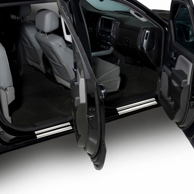 The Putco Black Platinum Door Sill Plates Kit is designed to enhance the appearance of your vehicle's door sills. These door sill plates are crafted with precision and will fit your make model perfectly. The door sill plates are constructed from high-quality 304 stainless steel with a black platinum coating. This finish gives the plates a luxurious and elegant appearance while also providing added extra protection to the door sill paint.The primary function of the Putco Black Platinum Door Sill Plates is to protect the door sills from scuffs, scratches, and other potential damage that can occur during daily entry and exit from the vehicle. In addition to their protective benefits, these door sill plates also give your interior a much need upgrade in looks.Installing the Putco Black Platinum Door Sill Plates Kit is a straightforward process. The plates come with 3M automotive-grade adhesive backing, ensuring easy and secure attachment to the door sills. The adhesive bond is strong enough to withstand regular use and exposure to various environmental conditions.Overall, the Putco Black Platinum Door Sill Plates Kit offers a perfect blend of functionality and aesthetics. It not only protects your Trucks door sills but also adds a touch of luxury and personalization to the interior, making it an excellent addition for anyone looking to upgrade and customize their car's interior with a premium touch. For a little extra, every Putco black platinum door sill plate is backed by a NeveRust limited lifetime warranty and is made in the USA.