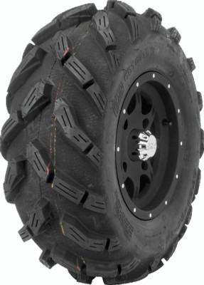 Have the terrain begging for mercy when this 6-ply constructed rubber meets the mud. The unique scale design in the tread valley provides extra traction and unparalleled cleanout. Slotted lugs add traction and provide weight savings for better steering control. Wraparound lugs give extra sidewall protection and excellent cornering bite. Sidewall features rim guard for wheel protection. Load rated for ATVs and UTVs.
