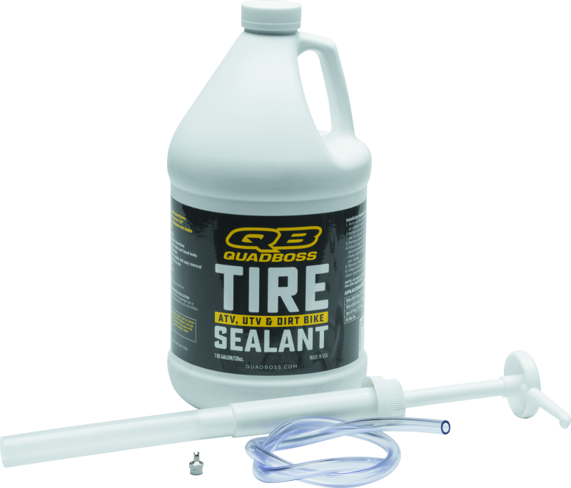 The perfect remedy for a tire that might have received the worst of it after an arduous ride. Seals up to 1/2" puncture in the tread and 1/4" puncture in the sidewall. Stops bead leaks and pinhole leaks in rims. Will not solidify or freeze (above -33 degreesF); will not rust steel, corrode aluminum wheels or clog valve core. Works for the life of the tire. All tires installed with QuadBoss® Tire Sealant are covered by a Flat-Free Guarantee.