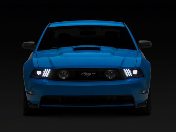 Raxiom's LED Projector Headlights are an excellent way to add an updated modern appearance to your 2010-2014 Mustang, all while improving your nighttime visibility. With an impressive integrated sequential turn signal and Daytime Running Light (DRL) design, these Headlights will give your Mustang a whole new look. Utilizing a projector lens design, these Raxiom LED Headlights will light up the road ahead with a bright focused beam for better nighttime visibility. The sequential amber LED turn signals and white LED DRL accents not only look great, but will also ensure that you are visible to distracted drivers day or night. Manufactured from OEM grade materials, these Raxiom Projector Headlights are assembled to precise standards for long-lasting quality. These Projector Headlights feature durable, black ABS plastic housings with clear polycarbonate lenses and modern LED lighting. Each housing is weather-sealed to prevent dirt and moisture from harming the state of the art electronics found inside. These Projector Headlights will not only bring a fresh new look to your Mustang, but they also meet or exceed the strict guidelines set forth by the U.S. Department of Transportation (DOT) and the Society of Automotive Engineers (SAE), making them legal for street use. These Projector Headlights were designed to be a direct plug and play replacement for your Mustang's original factory housings. The sequential turn signal and DRL light bar portion of the headlight will require splicing into your wiring harness with the supplied scotch lock connectors. It should be noted that you will need to remove the front fascia in order to gain access to the mounting bolts. Please be sure to have your headlights properly aimed/aligned before driving at night.