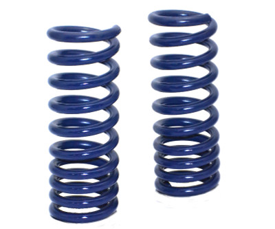 Front dual rate springs, 2" lowering for 1970-1981 GM F-Body with small block. Includes a pair of springs powder coated blue.
