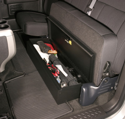 Quick view Tuffy Products Tuffy Ford F150 Supercrew Underseat Lockbox Full Length W/ Keyed Lock - 283-01 Compare $671.00 $559.99 This high security welded steel security lockbox mounts under the rear seat in your 2009-2014 Ford F-150 Crew Cab without the subwoofer. The full width formfitting design of the Tuffy lockbox has over 4000 cubic inches of lockable storage. Its secured... Add to Cart Add to Cart