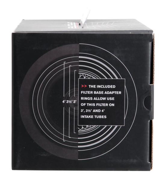 This Spectre High Performance Racing (HPR) Air Filter is a red media clamp-on filter that can be used for a wide variety of applications. Using the included adapter rings, this filter can fit 3 inch, 3-1/2 inch, and 4 inch diameter tubes. Manufactured using high quality materials throughout, including oiled synthetic media, urethane, and steel mesh, this washable performance filter is precision engineered for low restriction and better performance. This filter's top houses an inverted cone filter for improved service life and enhanced flow potential. Designed with a triple chrome plated steel top and base, this 9-1/2 inch tall air filter is factory pre-oiled and ready to use.