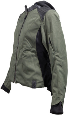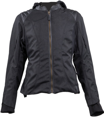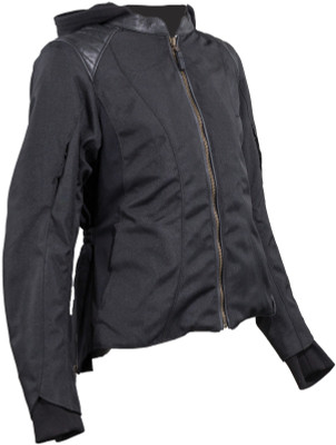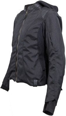 The Daydream™ textile motorcycle jacket features a combined AR-600 textile and AR-400 super stretch-fit and leather frame with removable Vault™ C.E. approved shoulder and elbow protectors, and a removable Vault™ C.E. spine protector. For added comfort, the jacket includes an elasticized ruched waist and zippered hip gussets.