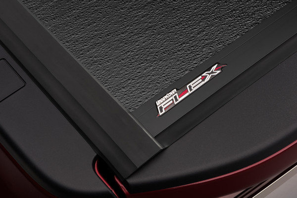 Introducing the next generation of folding covers -- the UnderCover Flex folding cover. Flex combines the best of both worlds, the security of a hard locking cover and convenience of a soft roll up cover. Constructed from the best materials available, Flex will withstand the abuse Mother Nature throws at it and keep coming back for more. Low Profile -- Ultra-low profile design rests inside the bed rails allowing for a very sleek look. Full Access -- Built in prop rods secure the cover allowing your truck to be driven with the cover fully open. Easy Removal -- Entire cover can be removed in seconds with no tools needed. Secure Design -- Plastic buckles and straps are included to secure the panels in the partially open position. FRP Composite Panels -- Lighter, stronger and higher dent resistance than aluminum. Weather Resistant -- Rubber seals and drain tubes channel water away from and out of the bed. Easy Clamp-on design. No other folding cover can match the Flex for versatility, security and function. Covered or uncovered, always an option with UnderCover.
