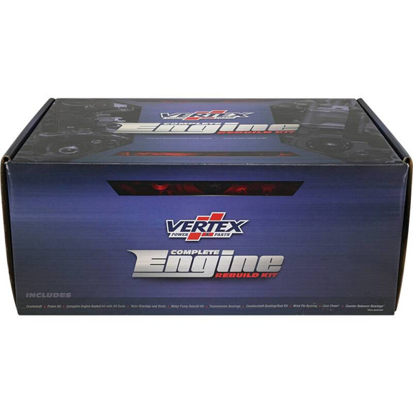 The only complete engine rebuild kit available. Kit includes Hot Rods heavy-duty crankshaft, Hot Rods counter balancer bearing kit (where applicable), Hot Rods main bearing and shaft seal kit, transmission bearing kit, and water pump rebuild kit, Vertex replica piston kit, Vertex complete gasket and oil seal kit, Hot Rods wrist pin bearing, or Hot Cams cam chain (where applicable)