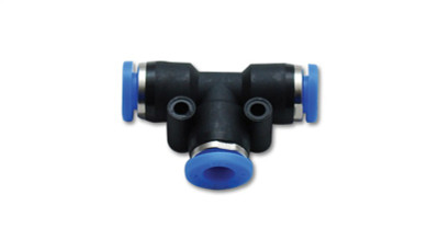 Vibrant Performance Pneumatic Union Tee Push Lock Vacuum Fittings allow for simple and secure tube connections that are suitable for both ambient and pressurized air. Your vacuum tubing quickly disconnects from the fitting by simply pushing down on the release collar. All threads are PTFE coated. Maximum Operating Pressure = 150psi. Catalog