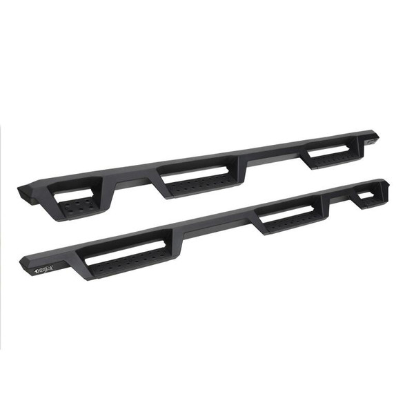 Westins HDX Drop Wheel-to-Wheel Nerf Step Bars feature a notched bar design with a 3rd step location for easy bed access. They provide strong traction with over 2 inches more of toe/heel step area than our Westin's HDX Drop W2W Nerf Step Bars include an added 3rd step location for easier bed area and cargo access. HDX also boasts more than 2 inches of added toe/heel step area which far exceeds all other competitive brands. HDX's notched bar design construction results in a reliable long lasting Bar, with a solid fit and a rugged look. The added length of HDX Drop Wheel-to-wheel Nerf Step Bars provides users with better cab access and better footing and traction for both drivers and passengers. Product includes mount kit and is offered in a variety of vehicle specific applications. Bolt-on installation so no drilling required. Mount kit included. Westin's exclusive Isolator Bracket supports the step bar past the truck cab, a feature that competitors do not offer. Without an Isolator Bracket, the step area that extends past the vehicle is left unsupported. Our unique design provides extra bed support without resulting in annoying creaking sounds.