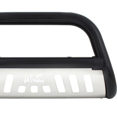 Westins Ultimate LED Bull Bar will take your truck to the next level with this cool new look! The integrated light bar is a 20 single row with 15 x 3 Watt Osram LEDs. The LED light bar is flush mounted in the center cross tube and weather sealed for moisture resistance. Built with 3 steel tubes, our Ultimate LED Bull Bar features molded transition bushings and a brushed stainless steel skid plate for a perfect look. The product is available in chrome plated stainless steel backed by a lifetime warranty, and in textured black powder coat backed by a 3-year warranty. Make a bold statement with Westins new Ultimate LED Bull Bar and give your truck the durability, look and style it deserves.