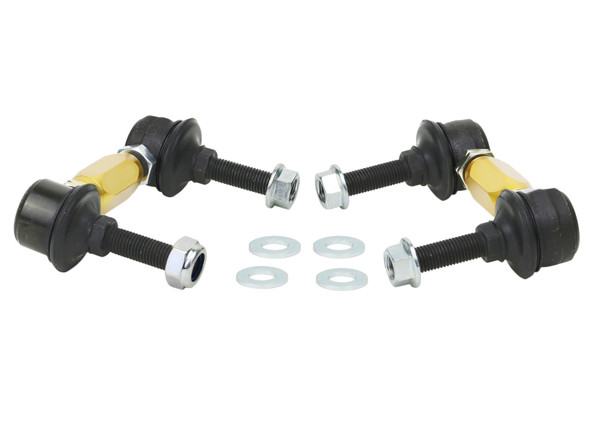 Not many enthusiasts are aware that OEM and more importantly aftermarket sway bar effectiveness can be hindered by worn or inadequate mounts, drop links and lateral stoppers. Whiteline adjustable sway bar links are engineered to be up to the task with top spec, light weight componentry combined with a window of adjustability, eliminating sway bar preload on installation but most importantly ensuring the maximum output of the sway bar for improved grip and better handling.
